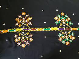 La broderie est l’art de donner vie à l’étoffe. Elle se pratique à l’aiguille et au fil, et exige une grande habileté. La broderie marocaine est un art qui se caractérise par une grande diversité de points, de motifs et de couleurs. Il existe différents types de broderie au Maroc, représentant les diverses régions du royaume, chacune avec son style distinctif. Le nom de la ville où elle a été réalisée est ajouté pour la différencier. Par exemple, il y a la broderie de Rabat, originaire de la ville de Rabat, et la broderie de Meknès, originaire de la ville de Meknès. Ces styles se sont diffusés depuis leurs villes d’origine pour devenir partie intégrante du patrimoine populaire marocain.