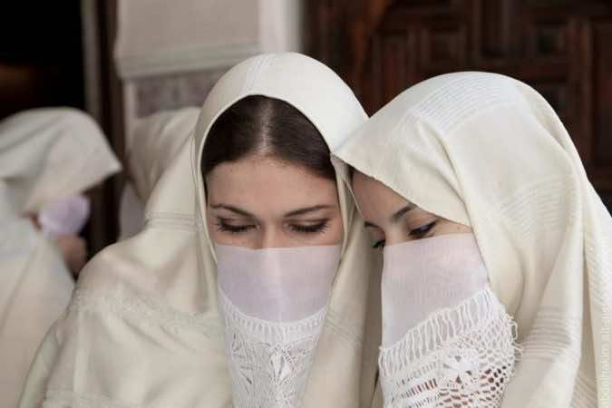 Le haïk est un vêtement traditionnel marocain, généralement blanc ou bleu. Il est parfois porté avec un voile blanc brodé dans le nord du pays, tandis que dans la région du Souss, au sud du Maroc, on utilise un voile noir. Dans les anciennes villes du Maroc, le haïk était le vêtement principal des femmes. Aujourd’hui, il est porté lors de la cérémonie traditionnelle du hammam pour les mariées et les jeunes mères, une célébration qui perpétue d’anciennes traditions de beauté, de parure et de vêtement.